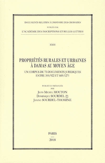 Cet ouvrage presente 73 actes notaries conserves au Moyen Age dans le depositoire de vieux papiers de la Grande mosquee de Damas ou etaient entreposes les documents hors d'usage a caractere plus ou moins religieux. La selection presentee porte en majorite sur des actes de vente, mais aussi sur des contrats de location, des certificats de propriete et des donations sous forme de waqf relatives aux proprietes rurales et urbaines de Damas et de son oasis, la Ghouta. Les acheteurs, vendeurs, bailleurs et locataires qui apparaissent dans cette documentation appartenaient essentiellement aux classes moyennes de la societe arabo-musulmane et ils nous permettent de decouvrir des aspects meconnus de la vie de ces populations actives et commercantes qui marquerent l'epoque des croisades. C'est ainsi une image nouvelle de la capitale syrienne qui s'offre a nous a travers ses activites et son habitat. Ainsi encore se trouve revelee l'emprise fonciere que la societe damascaine exercait sur les vergers de la Ghouta et les grands domaines peripheriques.