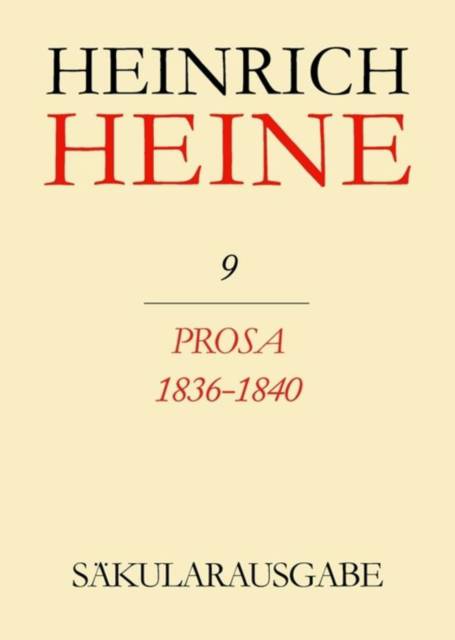 Für die Heine-Säkularausgabe musste eine Entscheidung bezüglich der chronologischen Anordnung getroffen werden. Gewählt wurde eine Anordnung, die zusammengehörige Werkkomplexe, zum Beispiel die Prosateile der "Reisebilder" oder die "Lutezia", als selbständige Bandeinheiten begreift. Ähnlich wie Heine selbst in der Ausgabe seiner französischsprachigen Werke bestimmte, werden in der Säkularausgabe gleichzeitig entstandene Texte nach inhaltlicher Übereinstimmung zusammengefast, so das sich eine leicht zu überschauende Anordnung des Gesamtwerkes ergibt. Band 9 enthält die Prosa von 1836 bis 1840