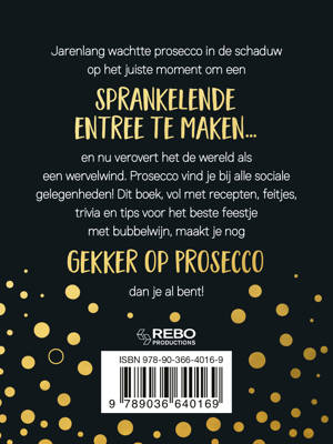 Jarenlang wachtte prosecco in de schaduw op het juiste moment om een sprankelende entree te maken... en nu verovert het de wereld als een wervelwind. Prosecco vind je bij alle sociale gelegenheden! Dit boek, vol met recepten, feitjes, trivia en tips voor het beste feestje met bubbelwijn, maakt je nog gekker op prosecco dan je al bent!