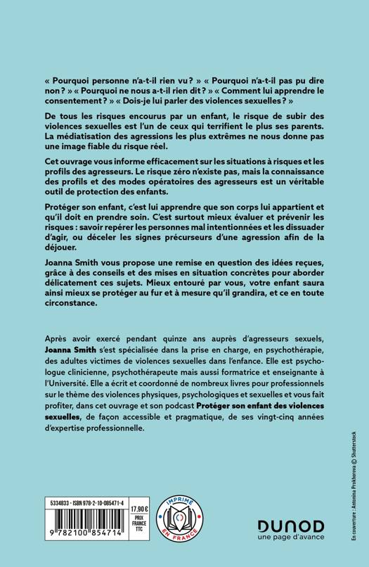 Joanna Smith vous propose une remise en question des idées reçues, grâce à des conseils et des mises en situation concrètes pour aborder délicatement ces sujets. Mieux entouré par vous, votre enfant saura ainsi mieux se protéger au fur et à mesure qu’il grandira, et ce en toute circonstance.