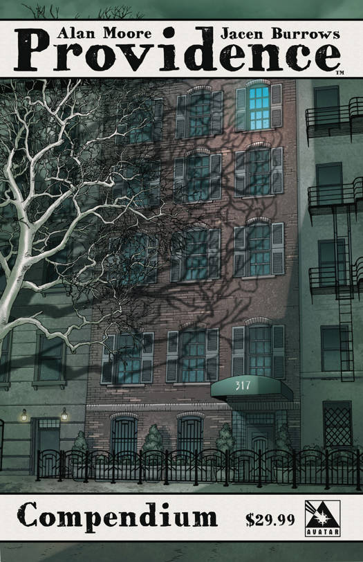 Finally, the complete Alan Moore masterpiece in one 480 page tome - the PROVIDENCE COMPENDIUM! Providence is Alan Moore's quintessential horror series! In it, he weaves and reinvents the works of H.P. Lovecraft through historical events. It is both a sequel and prequel to Neonomicon. The PROVIDENCE COMPENDIUM is the complete series, all twelve issues by Alan Moore and Jacen Burrows, in one 480 page volume.