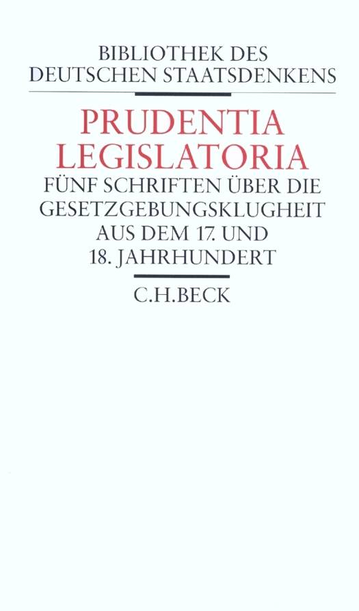 Dieser Band der von Hans Maier und Michael Stolleis herausgegebenen Reihe "Bibliothek des deutschen Staatsdenkens" widmet sich einem klassischen Thema der Rechts- und Staatswissenschaften. Die Lehre von der "Gesetzgebungsklugheit" war im 17. und 18. Jahrhundert ein umkämpftes Terrain der Rechtswissenschaft. Unter dem Titel "Prudentia Legislatoria" wurde diskutiert, wie der Mensch dazu veranlaßt werden könne, zu einem "nützlichen Mitglied" von Staat und Gesellschaft zu werden. Die ausgewählten Schriften bekannter und unbekannter Rechtsgelehrter bilanzieren diese Debatte.