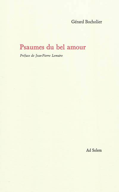 "En lisant les Psaumes du bel amour, on perçoit comme le murmure des commencements. On est doucement pris, porté, guidé par une voix dont l'origine et la direction sont inassignables, et l'on songe aux paroles du Christ à Nicodème dans l'évangile de Jean : " Le vent souffle où il veut et tu entends sa voix, mais tu ne sais pas d'où il vient ni où il va ". Le monde est là, mais comme traversé par un courant doux et discret qui nous entraîne vers le " jour au-delà ". Le courant secret qui irrigue ces vers nous porte plus loin que les mots. Il conduit le poète à s'effacer aux dernières pages, laisser monter la musique silencieuse des " vagues d'or du vent ", des " doigts du souffle " - le murmure de l'Esprit qui nous guide dans les ténèbres. On n'avait pas entendu d'accents aussi intimes dans le dialogue du poète avec son Dieu depuis les derniers recueils de Jean Grosjean" Jean-Pierre Lemaire