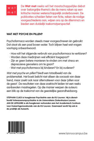 In de Wat met-reeks draait alles om hete hangijzers. Psychofarmaca worden steeds meer voorgeschreven én gebruikt. Dat staat als een paal boven water. Toch blijven heel wat vragen voorlopig onbeantwoord: - Hoe valt het stijgende verbruik van psychofarmaca te verklaren? - Worden deze medicijnen wel efficiënt toegepast? - Zijn er geen betere manieren te vinden om met stress en depressieve gevoelens om te gaan? - Wat met psychofarmaca bij kinderen? En bij ouderen? Wat met psyche en pillen? biedt een totaalbeeld van de problematiek. Het boek belicht niet alleen de oorzaak van deze trend, maar zoekt ook naar alternatieven voor deze 'pillen voor de geest'. De resultaten van deze zoektocht leiden tot een reeks aanbevolen maatregelen. Op die manier werpen de auteurs een blik op de toekomst van de geestelijke gezondheidszorg. Ontdek hier alle boeken in de 'Wat Met-Reeks'.