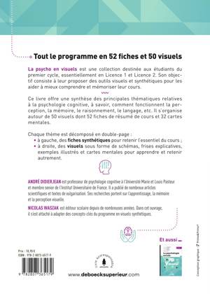 La psycho en visuels est une collection destinée aux étudiants du premier cycle, essentiellement en Licence 1 et Licence 2. Son objectif consiste à leur proposer des outils visuels et synthétiques pour les aider à mieux comprendre et mémoriser leur cours.
