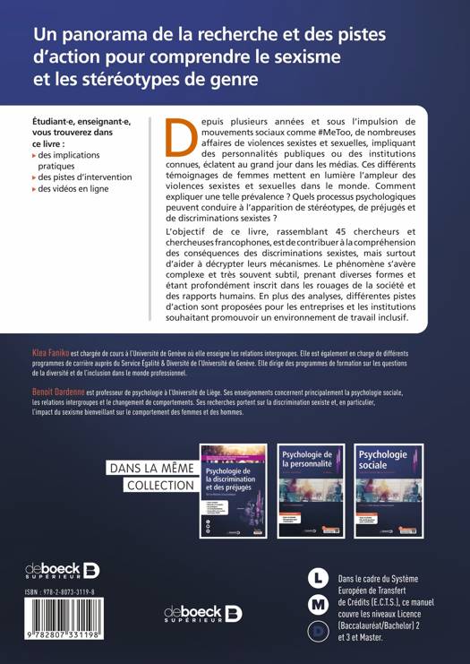 et ensuite ? Un véritable panorama de la recherche et des pistes d'action pour comprendre le sexisme, les stéréotypes de genre et les combattre.Depuis plusieurs années et sous l’impulsion de mouvements sociaux comme #MeToo, de nombreuses affaires de violences sexistes et sexuelles, impliquant des personnalités publiques ou des institutions connues, éclatent au grand jour dans les médias. Ces différents témoignages de femmes mettent en lumière l’ampleur des violences sexistes et sexuelles dans le monde. Comment expliquer une telle prévalence ? Quels processus psychologiques peuvent conduire à l’apparition de stéréotypes, de préjugés et de discriminations sexistes ?