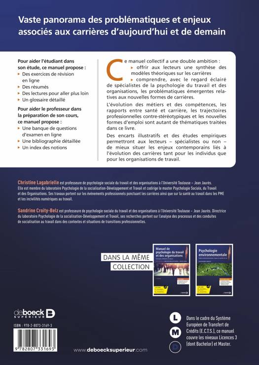 Des encarts illustratifs et des études empiriques permettront aux lecteurs – spécialistes ou non de la discipline – de mieux situer les enjeux contemporains liés à l’évolution des carrières tant pour les individus que pour les organisations de travail.