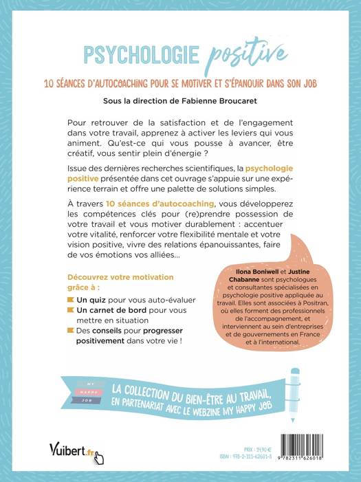 À travers 10 séances d’autocoaching, vous développerezles compétences clés pour (re)prendre possession devotre travail et vous motiver durablement : accentuervotre vitalité, renforcer votre flexibilité mentale et votrevision positive, vivre des relations épanouissantes, fairede vos émotions vos alliées…
