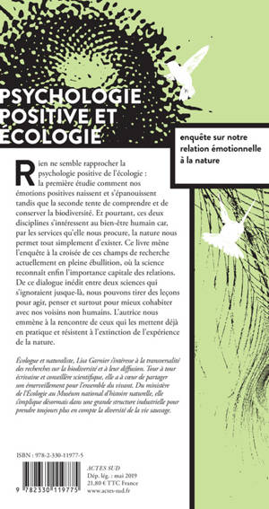Au cours de ces vingt dernières années, deux sciences que rien ne semble rapprocher ont cherché à comprendre le bien-être humain. D'un côté, la psychologie positive qui étudie comment nos émotions positives naissent, se maintiennent et nous apportent bien-être et bonheur. De l'autre côté, les sciences de la conservation de la biodiversité qui cherchent à protéger et conserver la nature. Ce livre est une enquête dans ces deux champs de recherche en ébullition où la science redécouvre la valeur capitale de la relation. Statistiques à l'appui, nous découvrons combien nous pouvons être sereins et heureux avec les autres et au contact de la nature.