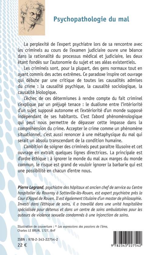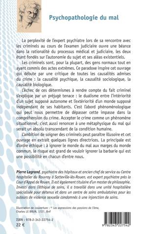 La perplexité de l'expert psychiatre lors de sa rencontre avec les criminels au cours de l'examen judiciaire ouvre une béance dans la rationalité du processus médical et judiciaire, les deux étant fondés sur l'autonomie du sujet et ses aléas existentiels. Les criminels sont, pour la plupart, des gens normaux tout en ayant commis des actes extrêmes. Ce paradoxe inspire cet ouvrage qui débute par une critique de toutes les causalités admises du crime : la causalité psychique, la causalité sociologique, la causalité biologique. L'ambition de soigner des criminels peut paraître illusoire et cet ouvrage en extrait quelques lignes directrices. La principale est d'ordre éthique : à ignorer le monde du mal aux marges du monde commun, le risque est grand de vouloir ignorer la barbarie qui est une possibilité en chacun d'entre nous.