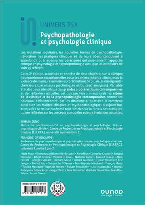 Les mutations sociétales, les nouvelles formes de psychopathologie, l’évolution des pratiques cliniques et de leurs objets conduisent à approfondir ou à repenser les paradigmes qui sous-tendent l’approche clinique en psychologie et psychopathologie ainsi que les dispositifs de soin s’y référant. Cette 2eédition, actualisée et enrichie de deux chapitres sur la clinique des expériences exceptionnelles et sur les enjeux théorico-cliniques de la violence de masse, rassemble les contributions de plusieurs enseignants-chercheurs (par ailleurs psychologues et/ou psychanalystes). Véritable état des lieux scientifique des grandes problématiques contemporaines et des réflexions actuelles, cet ouvrage vise à mieux saisir les enjeux de la clinique et de la psychopathologie contemporaines comme les nouveaux défis rencontrés par les cliniciens au quotidien. Il comprend aussi bien les réalités cliniques et psychopathologiques d’aujourd’hui, auxquelles se trouve confronté tout clinicien sur le terrain des pratiques, qu’une réflexion sur les concepts et modèles et leurs évolutions actuelles.