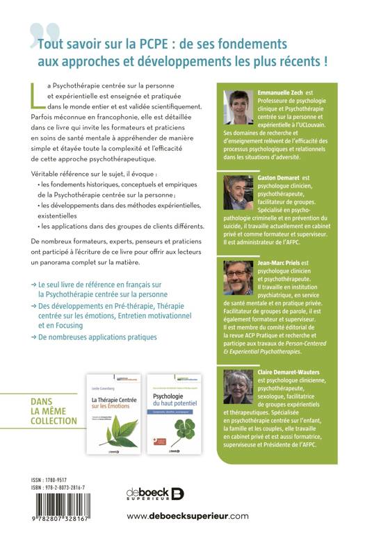 La Psychothérapie centrée sur la personne et expérientielle est enseignée et pratiquée dans le monde entier et est validée scientifiquement. Parfois méconnue en francophonie, elle est détaillée dans ce livre qui invite les formateurs et praticiens en soins de santé mentale à appréhender de manière simple et étayée toute la complexité et l’efficacité de cette approche psychothérapeutique.