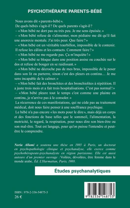 Nous avons dit parents-bébé . De quels bébés s'agit-il ? De quels parents s'agit-il ? - Mon bébé ne dort pas ou très peu. Je me sens épuisée. - Mon bébé refuse de s'alimenter, mon pédiatre me dit qu'il fait une anorexie mentale. J'ai très peur. Que faire ? - Mon bébé est un véritable tourbillon, impossible de le contenir. Il refuse les câlins et les contacts. Comment faire ? - Mon bébé ne me regarde pas. Ça m'inquiète ! - Mon bébé se bloque dans une position assise ou couchée sur le dos et refuse de bouger en se raidissant. - Mon bébé ne décroche pas de mes bras, impossible de le poser dans son lit ou parterre, sinon c'est des pleurs en continu... Je me sens incapable de le calmer. - Mon bébé fait des bronchites et des bronchiolites à répétition. Il a juste trois mois et a fait trois hospitalisations. C'est pas normal ! - Mon bébé pleure tout le temps c'est comme une plainte en continu, je n'arrive pas à le consoler. La récurrence de ces manifestations, qui ne cède pas au traitement médical, doit nous faire penser à une souffrance psychique. Le bébé n'a pas encore les mots pour le dire, mais déjà un corps et des fonctions de base telles que le sommeil, l'alimentation, la motricité, le regard, la respiration, pour nous dire son bien-être ou son mal-être. Tout est langage, pour qu'on puisse l'entendre et peut-être le comprendre.