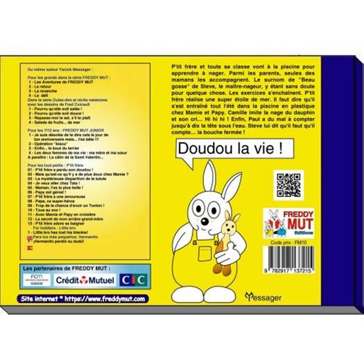 P'tit frère et toute sa classe vont à la piscine pour apprendre à nager. Parmi les parents, seules des mamans les accompagnent. Le surnom de "Beau gosse" de Steve, le maître-nageur, y étant sans doute pour quelque chose. Les exercices s'enchaînent. P'tit frère réalise une super étoile de mer. Il faut dire qu'il s'est entraîné tout l'été dans la piscine en plastique chez Mamie et Papy. Camille imite la nage du dauphin et son cri… Hi hi hi ! Enfin, Paul a du mal à compter jusqu'à dix la tête sous l'eau. Steve lui dit qu'il faut qu'il compte… la bouche fermée !