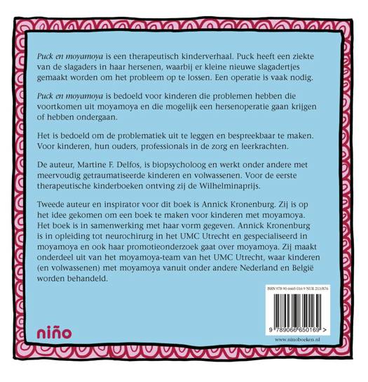 Puck en moyamoya is een therapeutisch kinderverhaal. Puck heeft een ziekte van de slagaders in haar hersenen, waarbij er kleine nieuwe slagadertjes gemaakt worden om het probleem op te lossen. Een operatie is vaak nodig.