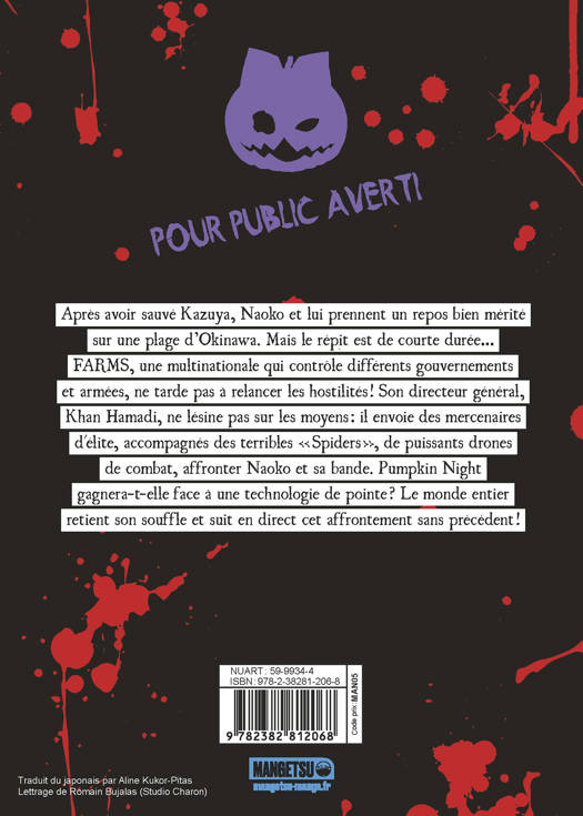 Après avoir sauvé Kazuya, Naoko et lui prennent un repos bien mérité sur une plage d'Okinawa. Mais le répit est de courte durée... FARMS, une multinationale qui contrôle différents gouvernements et armées, ne tarde pas à relancer les hostilités ! Son directeur général, Khan Hamadi, ne lésine pas sur les moyens : il envoie des mercenaires d'élite, accompagnés des terribles « Spiders », de puissants drones de combat, affronter Naoko et sa bande. Pumpkin Night gagnera-t-elle face à une technologie de pointe ? Le monde entier retient son souffle et suit en direct cet affrontement sans précédent !
