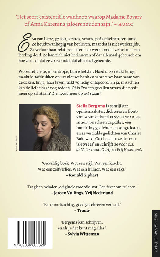 Woordfetisjiste, misantrope, borrelbefster. Hoed u: ze neukt terug, maakt kutafdrukken op uw nieuwe bank en schreeuwt haar naam van de daken. En ja, haar leven raakt volledig ontspoord. En ja, ze begint alsnog een relatie met de leerling. Misschien kan zijn liefde haar redden. Of is Eva een gevallen vrouw die nooit meer op zal staan? Die nooit meer op wil staan?
