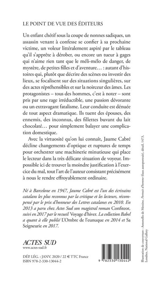 Avec la virtuosité qu'on lui connaît, Jaume Cabré décline changements d'optique et ruptures de temps pour orchestrer une machinerie minutieuse qui place le lecteur dans la très délicate situation de voyeur. Impossible ici de trouver la moindre justification à l'exercice du mal, tout l'art de l'auteur consistant précisément à nous le rendre effroyablement ordinaire.