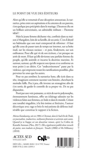 Mais la jeune femme déchante vite, confi née dans sa maison à Mangalore, loin de sa famille, de ses amis. C'est d'abord ses habitudes que son mari entreprend de réformer : il faut qu'elle cesse de passer tant de temps sur internet, sur sa boîte mail, sur les réseaux sociaux - et puis, finalement, sur son ordinateur. Pour elle qui vit de son écriture, c'est presque un arrêt de mort. Il faut qu'elle devienne une parfaite femme du peuple, qu'elle assimile et incarne la doctrine marxiste. Et surtout, surtout, qu'elle respecte son époux et se conforme en tout point à ses désirs. Cet "endoctrinement" passe par la violence, qui emprunte toutes les ramifications possibles, plus perverses les unes que les autres.