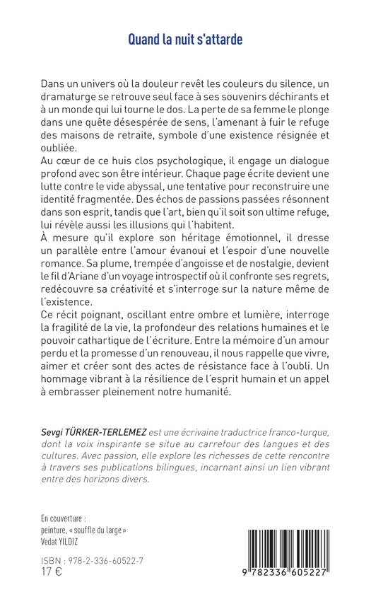 Dans un univers où la douleur revêt les couleurs du silence, un dramaturge se retrouve seul face à ses souvenirs déchirants et à un monde qui lui tourne le dos. La perte de sa femme le plonge dans une quête désespérée de sens, l'amenant à fuir le refuge des maisons de retraite, symbole d'une existence résignée et oubliée. Au coeur de ce huis clos psychologique, il engage un dialogue profond avec son être intérieur. Chaque page écrite devient une lutte contre le vide abyssal, une tentative pour reconstruire une identité fragmentée. Des échos de passions passées résonnent dans son esprit, tandis que l'art, bien qu'il soit son ultime refuge, lui révèle aussi les illusions qui l'habitent. À mesure qu'il explore son héritage émotionnel, il dresse un parallèle entre l'amour évanoui et l'espoir d'une nouvelle romance. Sa plume, trempée d'angoisse et de nostalgie, devient le fil d'Ariane d'un voyage introspectif où il confronte ses regrets, redécouvre sa créativité et s'interroge sur la nature même de l'existence. Ce récit poignant, oscillant entre ombre et lumière, interroge la fragilité de la vie, la profondeur des relations humaines et le pouvoir cathartique de l'écriture. Entre la mémoire d'un amour perdu et la promesse d'un renouveau, il nous rappelle que vivre, aimer et créer sont des actes de résistance face à l'oubli. Un hommage vibrant à la résilience de l'esprit humain et un appel à embrasser pleinement notre humanité.