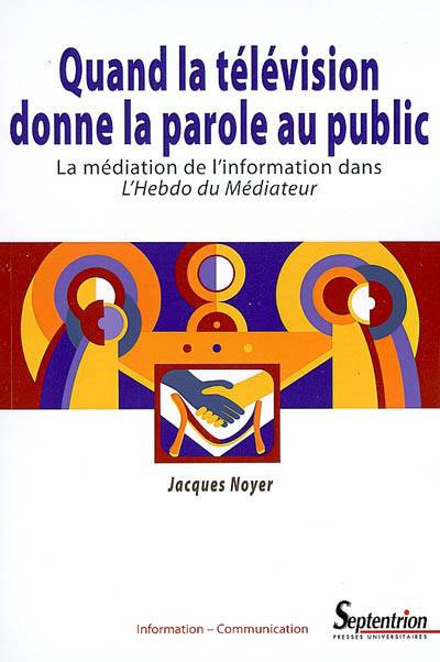 L'analyse de l'opération de médiation comme construction d'un espace de débat sur la conception et la réception de l'information télévisée est le fil conducteur de cet ouvrage qui tente, à partir de la mise en place de L'Hebdo du Médiateur sur France 2 en 1998, d'éclairer la genèse de ce projet, la nature du dispositif qui le formalise, la place du médiateur qui en assure la mise en oeuvre.