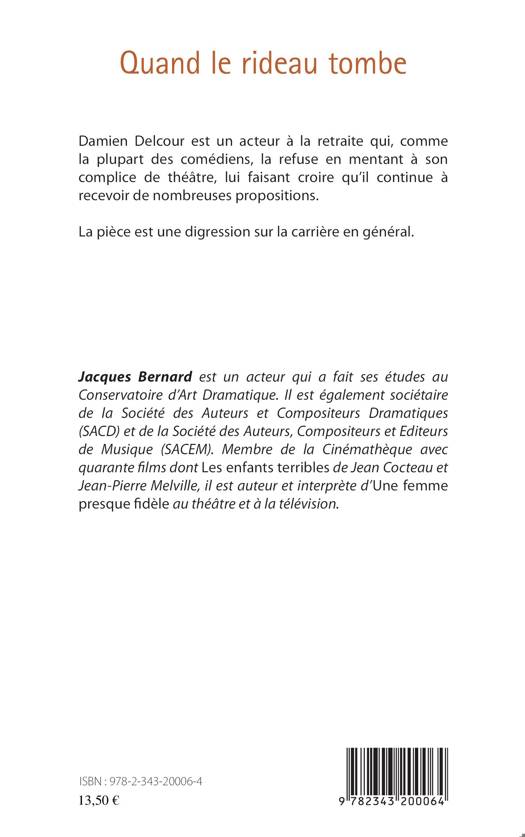 Damien Delcour est un acteur à la retraite qui, comme la plupart des comédiens, la refuse en mentant à son complice de théâtre, lui faisant croire qu’il continue à recevoir de nombreuses propositions.