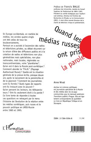 Qu'en est-il dans la Russie post-soviétique? Comment aborder le "P.A.R." (Paysage  Audiovisuel Russe) ? Quelle est la situation générale de la presse écrite, presque douze ans après le lancement de la perestroïka et de la glasnost? Comment les journalistes sont-ils formés? Quels types de rapports  ont-ils instauré avec le pouvoir?
