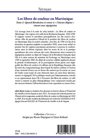 Cet ouvrage démontre comment la ségrégation perdure en dépit de l'impact de la Révolution française dans l'île et à cause surtout du maintien de l'esclavage en Martinique entre 1789 et septembre 1802. En dépit de certaines velléités égalitaires durant la période révolutionnaire, de la participation d'une partie non négligeable des libres de couleur à la défense de la République française, ils sont demeurés dans un entre-deux discriminatoire et ségrégatif.