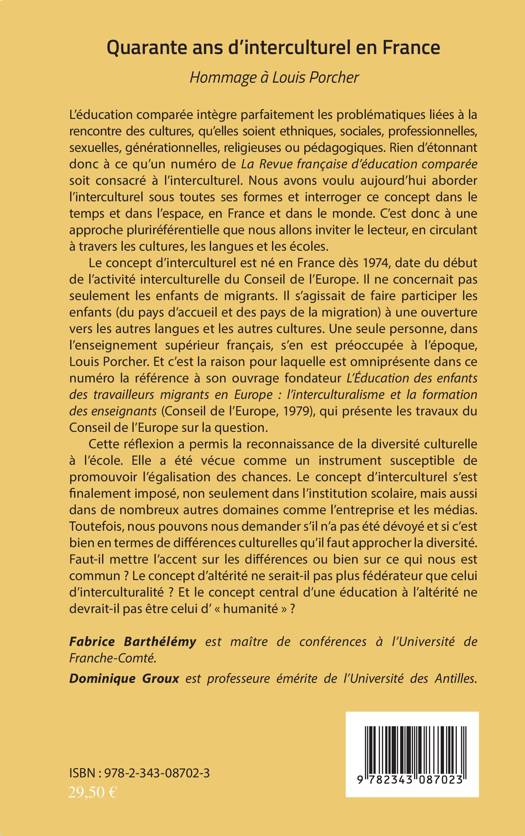 Ce volume aborde l'interculturel sous toutes ses formes et interroge ce concept dans le temps et dans l'espace, en France et dans le monde. Il invite le lecteur à une approche pluriréférentielle en circulant à travers les cultures, les langues et les écoles. Le concept d'interculturel s'est finalement imposé, non seulement dans l'institution scolaire, mais aussi dans de nombreux autres domaines, comme l'entreprise et les médias.