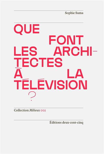 Frank Lloyd Wright participant à un jeu télévisé sur cbs ; Le Corbusier présentant l'architecture moderne comme une religion à la rtf ; Frank Gehry invité de Charlie Rose, ou en personnage des Simpsons, et côtoyant des stars de cinéma comme Brad Pitt ; Jean Nouvel parlant de l'avenir de l'architecture dans une boîte de nuit avec Thierry Ardisson... Mais que font les architectes à la télévision ? Loin des pratiques médiatiques ordinaires du champ de l'architecture (écriture de manifestes, expositions, conférences académiques, etc.), c'est par l'entremise de la télévision et pour ses qualités inclusives et populaires que les architectes diffusent depuis des années leurs points de vue sur la discipline.