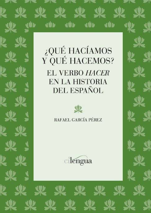 "¿Qué hacíamos y qué hacemos? El verbo hacer en la historia del español", del profesor Rafael García Pérez de la Universidad Carlos III de Madrid, es un ejemplo de aplicación coherente de los principios lingüísticos que rigen la relación entre sintaxis y semántica a la elucidación de la historia de las palabras.