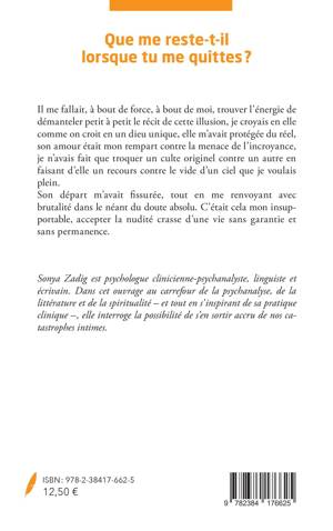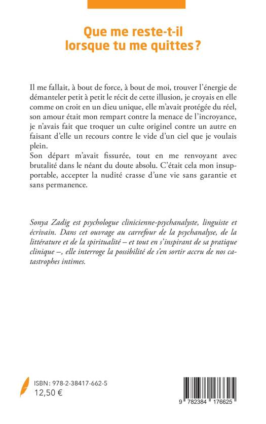 Il me fallait, à bout de force, à bout de moi, trouver l'énergie de démanteler petit à petit le récit de cette illusion, je croyais en elle comme on croit en un dieu unique, elle m'avait protégée du réel, son amour était mon rempart contre la menace de l'incroyance, je n'avais fait que troquer un culte originel contre un autre en faisant d'elle un recours contre le vide d'un ciel que je voulais plein. Son départ m'avait fissurée, tout en me renvoyant avec brutalité dans le néant du doute absolu. C'était cela mon insupportable, accepter la nudité crasse d'une vie sans garantie et sans permanence.