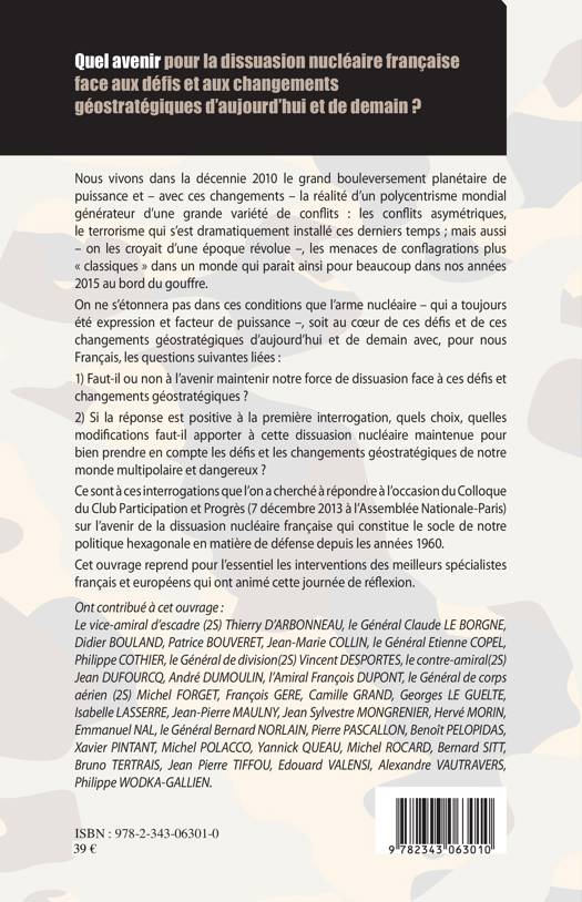 L'arme nucléaire est au coeur des défis et des changements géostratégiques d'aujourd'hui, avec, pour nous Français, les questions suivantes liées : Faut-il ou non à l'avenir maintenir notre force de dissuasion face aux défis et changements géostratégiques ? Si la réponse est positive, quels choix, quelles modifications faut-il apporter à cette dissuasion nucléaire maintenue pour bien prendre en compte les défis et les changements géostratégiques de notre monde multipolaire et dangereux ?