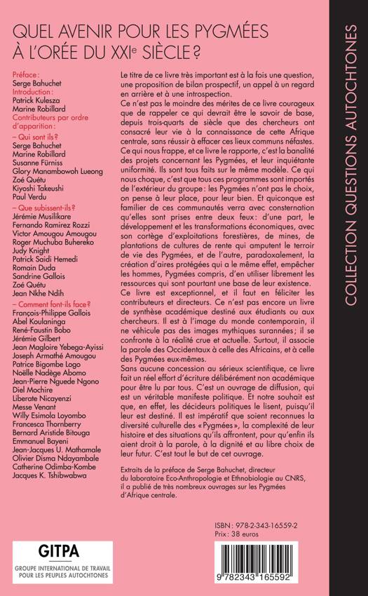 Sans aucune concession au sérieux scientifique, ce travail est un ouvrage de diffusion et un véritable manifeste politique. Et notre souhait est que, en effet, les décideurs politiques le lisent. Il est impératif que soient reconnues la diversité culturelle des "Pygmées", la complexité de leur histoire et des situations qu'ils affrontent, pour qu'enfin ils aient droit à la parole, à la dignité et au libre choix de leur futur. c'est tout le but de cet ouvrage. (extrait de la préface de Serge Bahuchet)