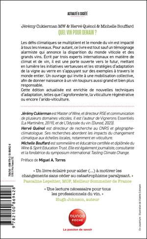 « Une lecture nécessaire pour tous les professionnels du vin. » Hugh Johnson, auteur « Un livre informé, pragmatique mais éclairé pour aider (…) à motiver les changements sans céder au catastrophisme paralysant. » Pascaline Lepeltier, MOF, Meilleur Sommelier de France « Aucun sujet n’est plus important (…), et je suis ravi de le voir traité avec autant de calme, de sérieux et de perspicacité. » Andrew Jefford, auteur et journaliste