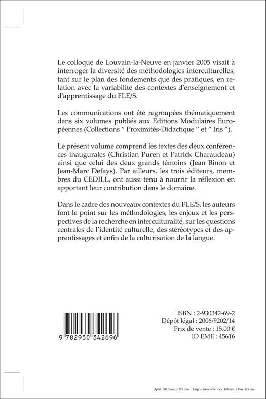 Le colloque de Louvain-la-Neuve en janvier 2005 visait à interroger la diversité des méthodologies interculturelles, tant sur le plan des fondements que des pratiques, en relation avec la variabilité des contextes d'enseignement et d'apprentissage du FLE/S.Les communications ont été regroupées thématiquement dans six volumes publiés aux Editions Modulaires Européennes (Collections "Proximités-Didactique" et "Iris"). Le présent volume comprend les textes des deux conférences inaugurales...