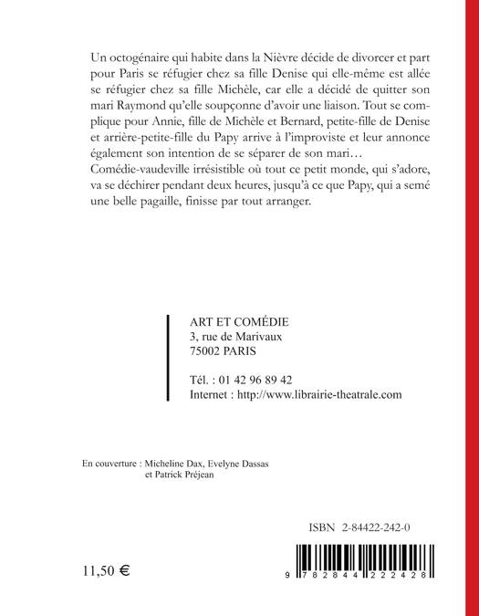 Un octogénaire qui habite dans la Nièvre décide de divorcer et part pour Paris se réfugier chez sa fille Denise qui elle-même est allée se réfugier chez sa fille Michèle, car elle a décidé de quitter son mari Raymond qu'elle soupçonne d'avoir une liaison. Tout se complique pour Annie, fille de Michèle et Bernard, petite-fille de Denise et arrière-petite-fille du Papy arrive à l'improviste et leur annonce également son intention de se séparer de son mari...
