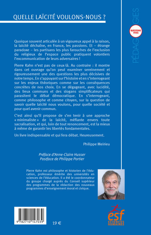 Pierre Kahn n’est pas de ceux-là. Au contraire : il montre dans cet ouvrage qu’on peut examiner sereinement et rigoureusement une des questions les plus décisives de notre temps. En s’appuyant sur l’histoire et en s’interrogeant sur les enjeux théoriques comme sur les conséquences concrètes de nos choix. En se dégageant, avec lucidité, des lieux communs et des slogans simplificateurs qui parasitent le débat démocratique. En s’interrogeant, comme philosophe et comme citoyen, sur la question de savoir quelle laïcité nous voulons, pour quelle société et pour quel avenir commun.