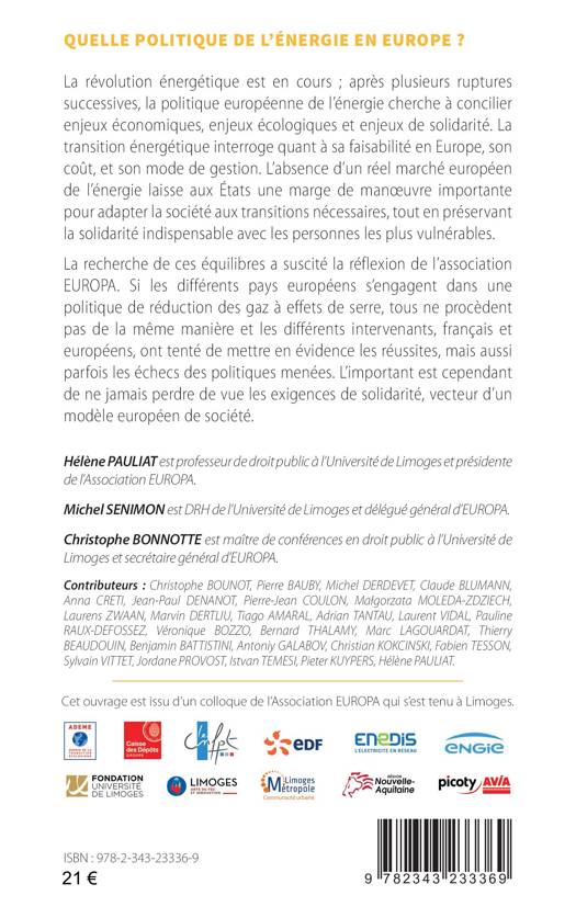 La révolution énergétique est en cours ; après plusieurs ruptures, la politique européenne de l’énergie cherche à concilier enjeux économiques, écologiques et de solidarité. La transition énergétique interroge quant à sa faisabilité en Europe, son coût, et son mode de gestion. L’absence d’un réel marché européen de l’énergie laisse aux États une marge de manoeuvre importante pour adapter la société aux transitions nécessaires, tout en préservant la solidarité indispensable avec les personnes les plus vulnérables. La recherche de ces équilibres a suscité notre réflexion. Si les différents pays européens s’engagent dans une politique de réduction des gaz à effets de serre, tous ne procèdent pas de la même manière. L’ouvrage tente de mettre en évidence les réussites et les échecs des politiques menées, sans oublier la solidarité au coeur du modèle européen.