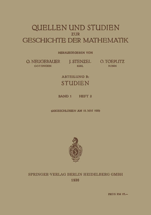 6. Quellen Und Studien Zur Geschichte Der Mathematik