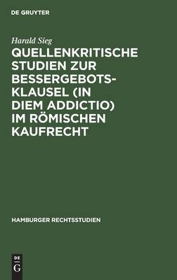 Quellenkritische Studien Zur Bessergebotsklausel (in Diem Addictio) Im Römischen Kaufrecht
