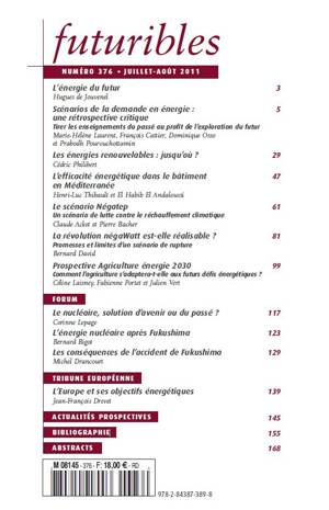 Scénarios de la demande en énergie : une rétrospective critique. Tirer les enseignements du passé au profit de l’exploration du futur Marie-Hélène Laurent, François Cattier, Dominique Osso et Prabodh Pourouchottamin