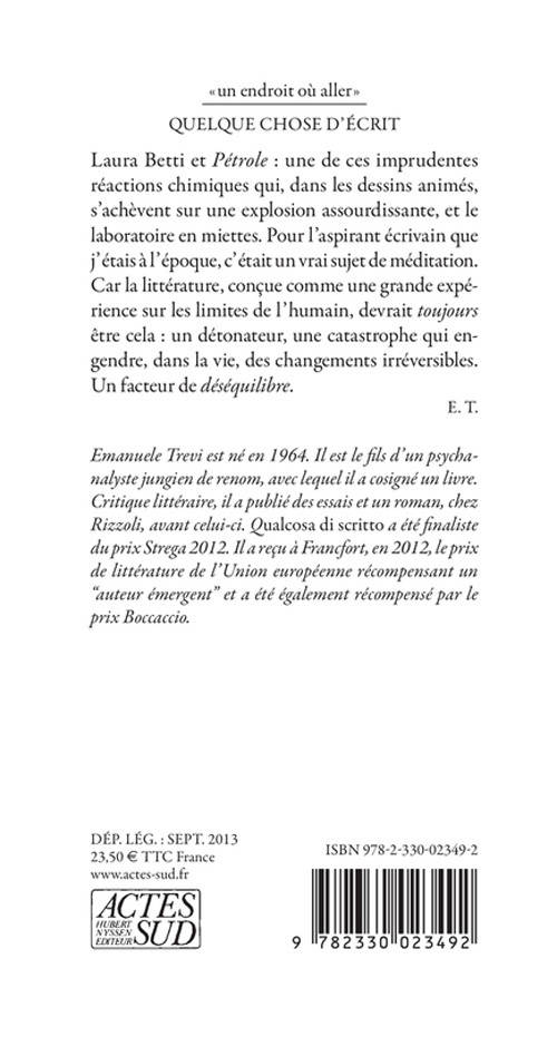 L'histoire presque vraie d'une rencontre impossible avec Pier Paolo Pasolini à travers sa comédienne fétiche et "gardienne du temple", Laura Betti. Un livre qui brouille magistralement les genres littéraires et propose une interprétation, aussi radicale qu'inattendue, de «Pétrole».