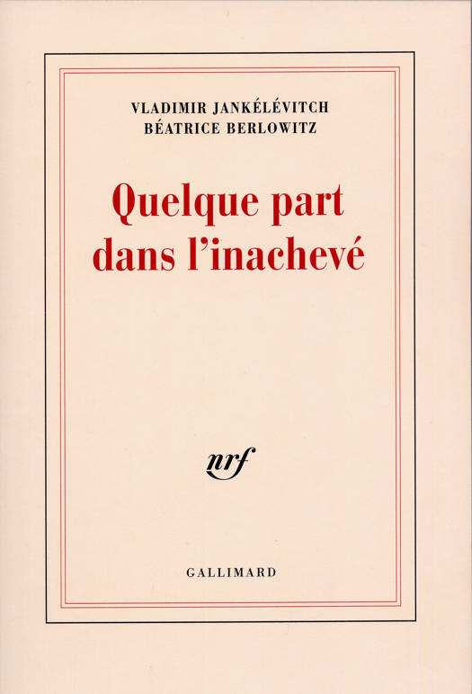 Quelque part dans l'inachevé... Comment mieux saisir que par cette phrase de Rilke, l'insaisissable Jankélévitch. Un philosophe qui ressemble à un poète. Un écrivain qui est un musicien. Stimulé par les questions de Béatrice Berlowitz, il entrouvre enfin son domaine ; celui de l'impalpable, de l'étincelle fugace, du vague à l'âme, de la nostalgie ; il laisse s'épancher le monde secret qui habite au coeur de son oeuvre. On parle d'amour et d'humour, de musique et de silence, de morale et de politique, de réminiscences et d'innocence. Le lecteur s'apercevra vite que ces entretiens, ce dialogue, sont tout le contraire de ce que produit de nos jours le magnétophone, instrument trop précis, trop fidèle et pour tout dire vulgaire. Il s'agit d'un livre écrit, ce qui garantit une plus haute fidélité, et peut-être bien une oeuvre d'art.