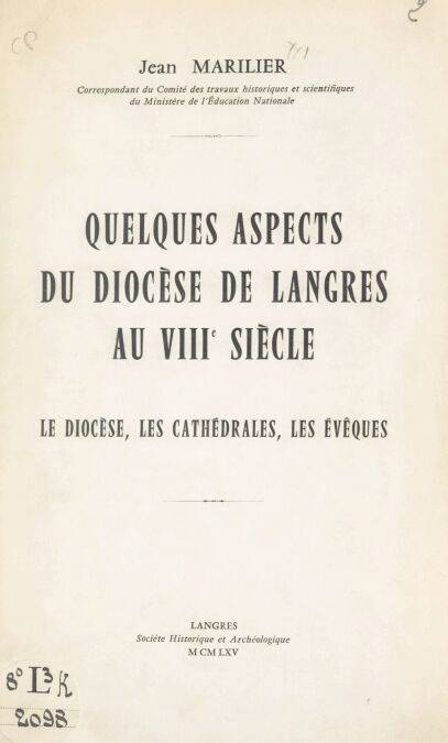 Quelques aspects du diocèse de Langres au VIIIe siècle EBOOK
