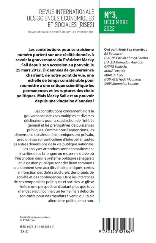 Les contributions pour ce troisième numéro portent sur une réalité donnée, à savoir la gouvernance du Président Macky Sall depuis son accession au pouvoir, le 25 mars 2012. Dix années de gouvernance charrient, de notre point de vue, une échelle de temps considérable pour soumettre à une critique scientifique les permanences et les ruptures des choix politiques. Mais Macky Sall est au pouvoir depuis une vingtaine d'année ! Les contributions concernent alors la gouvernance dans ses multiples et diverses déclinaisons pour la satisfaction de l'intérêt général et les prérogatives de puissances publiques. Comme nous l'annoncions, les dimensions sociales et économiques ont prévalu, avec une saveur particulière d'interpeller toutes les autres dimensions de la vie publique nationale. Les analyses attendues sont nécessairement inscrites dans la longue ou moyenne durée où l'inscription dans le système politique sénégalais et la gestion publique sont des lieux communs qui donnent sens aux dits choix politiques, certes en fonction des défis structurels, des projets de société et des contingences. Dans les interstices de ces temporalités politiques et sociales se glisse l'idée d'une perspective d'autant plus que tout mandat électif connait un terme mais déborde son cadre pour des mandats à venir, qu'il ait alternance politique ou non.