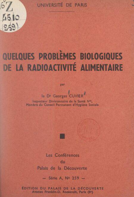 Quelques problèmes biologiques de la radioactivité alimentaire EBOOK