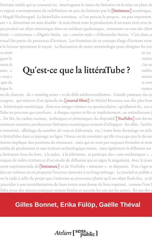 Après les sites et blogs des années 2000 et les réseaux sociaux au début des années 2010, les poètes et écrivaines investissent désormais l'espace YouTube par une production littéraire audiovisuelle. À la fois archive et laboratoire, YouTube favorise l'invention de nouvelles écritures à l'écran. De multiples traditions s'y croisent, du vidéopoème au journal et à la performance, exploitant les spécificités du support numérique. Cet ouvrage est le premier à proposer un tour d'horizon et une analyse approfondie de ce phénomène dans le paysage littéraire français.
