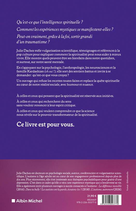 Julie Dachez mêle vulgarisation scientifique, témoignages et références à la pop culture pour expliquer comment la spiritualité peut nous aider à mieux vivre. Elle montre quels peuvent être ses bienfaits dans notre quotidien, et surtout, sur notre santé mentale.
