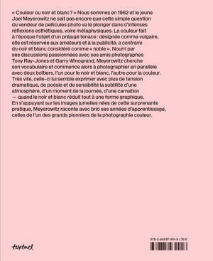 « Couleur ou noir et blanc ? » En 1962 le jeune Joel Meyerowitz ne sait pas encore que cette question du vendeur de pellicules va le plonger dans d'intenses réflexions esthétiques. Nourri par ses discussions passionnées avec ses amis photographes Tony Ray-Jones et Garry Winogrand, Meyerowitz cherche son vocabulaire et commence à photographier en parallèle avec deux boîtiers, l'un pour le noir et blanc, l'autre pour la couleur. En s'appuyant sur les images jumelles nées de cette surprenante pratique, Meyerowitz raconte avec brio ses années d'apprentissage, celles de l'un des grands pionniers de la photographie couleur.
